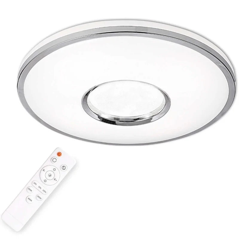 Nowoczesny plafon LED LEON marki POLUX to funkcyjne oświetlenie, które idealnie nada się do salonu czy sypialni. Dzięki pilotowi możesz płynnie sterować lampą zmieniając barwę czy ilość światła. Produkt działa z mocą 40W i może świecić ciepłym, neutralnym oraz zimnym światłem (3000K-4000K-6500K). Lampa sufitowa posiada białą obudowę, która wkomponuje się w każde wnętrze. Lampa posiada możliwość ściemniania za pomocą pilota- max.5200 lumenów. Plafon sprzedawany jest bez baterii do pilota. Wymiary produktu to: 39x8,5cm.