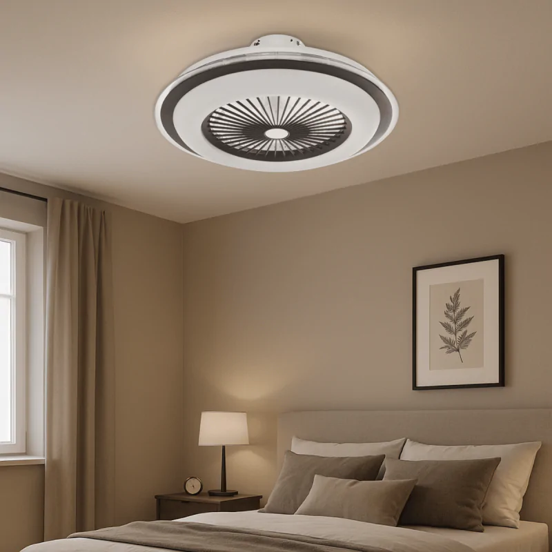 Uniwersalny, nowoczesny design sprawia, że plafon idealnie komponuje się z różnymi stylami wnętrz – od minimalistycznych po klasyczne. Kompaktowa konstrukcja doskonale pasuje również do pomieszczeń o ograniczonej przestrzeni, zapewniając optymalne oświetlenie i przyjemne chłodzenie w jednym, estetycznym urządzeniu.