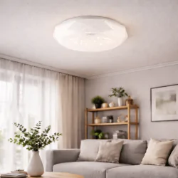 - Komfortowe oświetlenie pomieszczenia: Światło jest łagodnie rozpraszane, dzięki czemu pomieszczenie staje się przyjemne do wypoczynku i codziennego użytkowania.