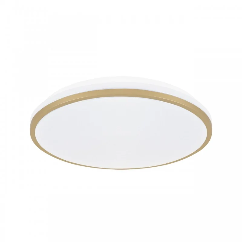 Plafon 04347 z kolekcji LINUS marki IDEUS, dzięki klasycznej okrągłej formie wykonania dopasuje się niemal do każdego pomieszczenia. Biały kolor został ozdobiony złotą obwódką, która nadaje całej konstrukcji szykownego charakteru. Stopień ochronny wynosi IP20 więc lampa sufitowa przystosowana jest tylko do użytku wewnątrz. Charakteryzuje się energooszczędnością oraz długą żywotnością. Wbudowane diody LED świecą przyjemną neutralną barwą światła, równą 4000K o mocy 18W. Strumień świetlny pulsuje na poziomie 1900 lumenów. Produkt wykonany z solidnych materiałów. Oświetlenie sufitowe mierzy 6,5cm wysokości, natomiast średnica to 33cm. Produkt objęty jest gwarancją producenta.
