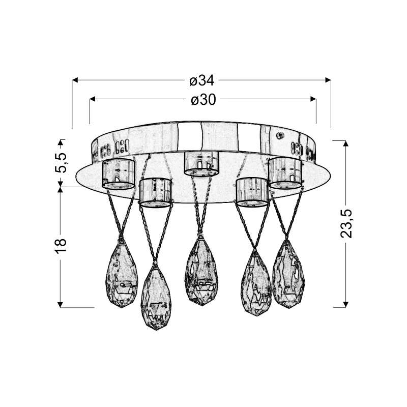 - Materiał: klosz metalowy z kryształkami, podstawa metal
