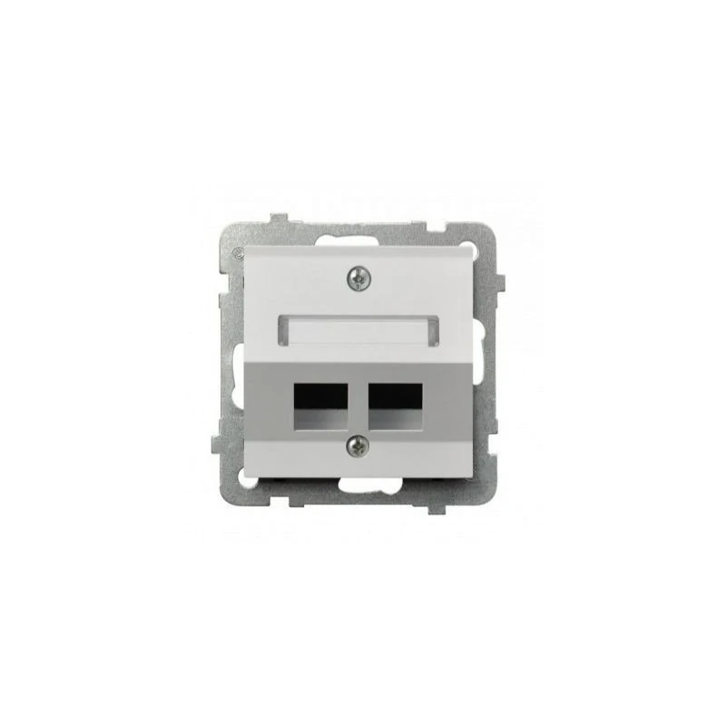 Obudowa do gniazda komputerowego skośnego w kolorze białym serii AS firmy OSPEL, przeznaczone do montażu podtynkowego. Obudowa wymaga dokupienia ramki serii AS firmy OSPEL.