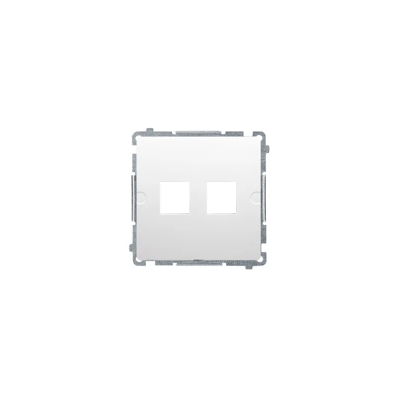 Pokrywa gniazd teleinformatycznych na Keystone płaska podwójna. Montaż gniazda na wkręty do puszki; biały