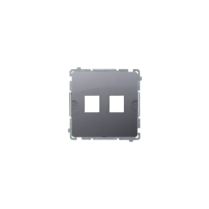 Pokrywa gniazd teleinformatycznych na Keystone płaska podwójna. Montaż gniazda na wkręty do puszki; srebrny mat