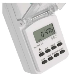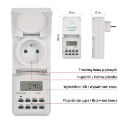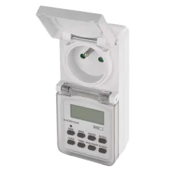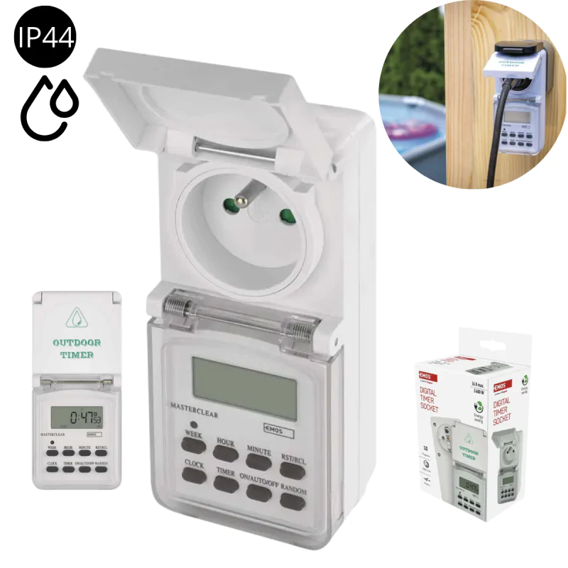 Zewnętrzny timer cyfrowy wyróżnia się solidnym wykonaniem i odpornością na warunki atmosferyczne, dzięki czemu doskonale sprawdzi się w ogrodzie, na tarasie czy przy systemach nawadniania. To praktyczne narzędzie, które automatyzuje codzienne czynności i pozwala na bezobsługowe sterowanie oświetleniem czy pompami.