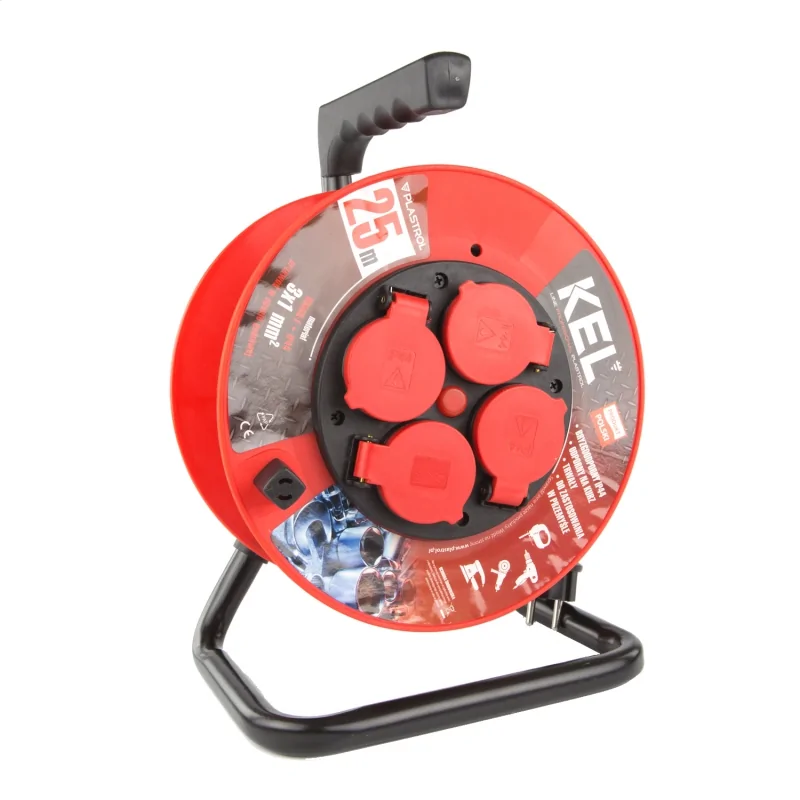 Bębnowy przedłużacz PB-PRO/S/25M/3X1/H05RR-F firmy PLASTROL to solidny i profesjonalny przedłużacz warsztatowy i jest o długości 25m. Specjalistyczny przedłużacz bębnowy jest wyposażony w cztery gniazda z klapką oraz uziemieniem. Zwijany przedłużacz w kolorze czarnym firmy PLASTROL jest wyposażony w gumowy przewód z polaryzacją typu 3x1mm H05RR-F i posiada stopień odporności IP44. Prąd znamionowy przedłużacza bębnowego to 10A, a jego maksymalne obciążenie to 2300W. Na stronie naszego sklepu internetowego znajdziecie przedłużacze bębnowe o różnych dlugościach.
