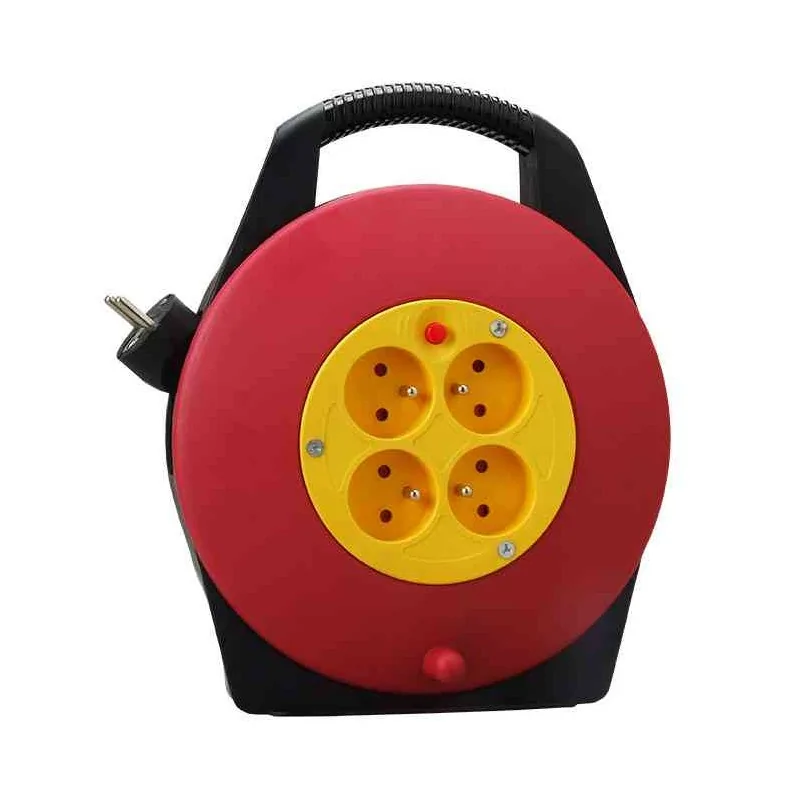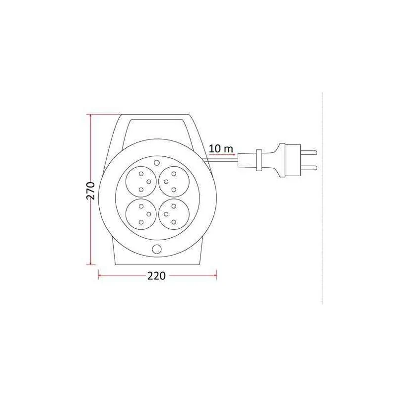 Przedłużacz elektryczny zwijany o długości 10 metrów PK-1 Rum-Lux. Wygodny w użyciu przedłużacz z rączką do przenoszenia, został wyposażony w 4 gniazda z uziemieniem. Konstrukcja przedłużacza kasetowego, pozwala na rozwinięcie odpowiedniej ilości przewodu, natomiast reszta przewodu, jest estetycznie schowana w kolorowej obudowie.