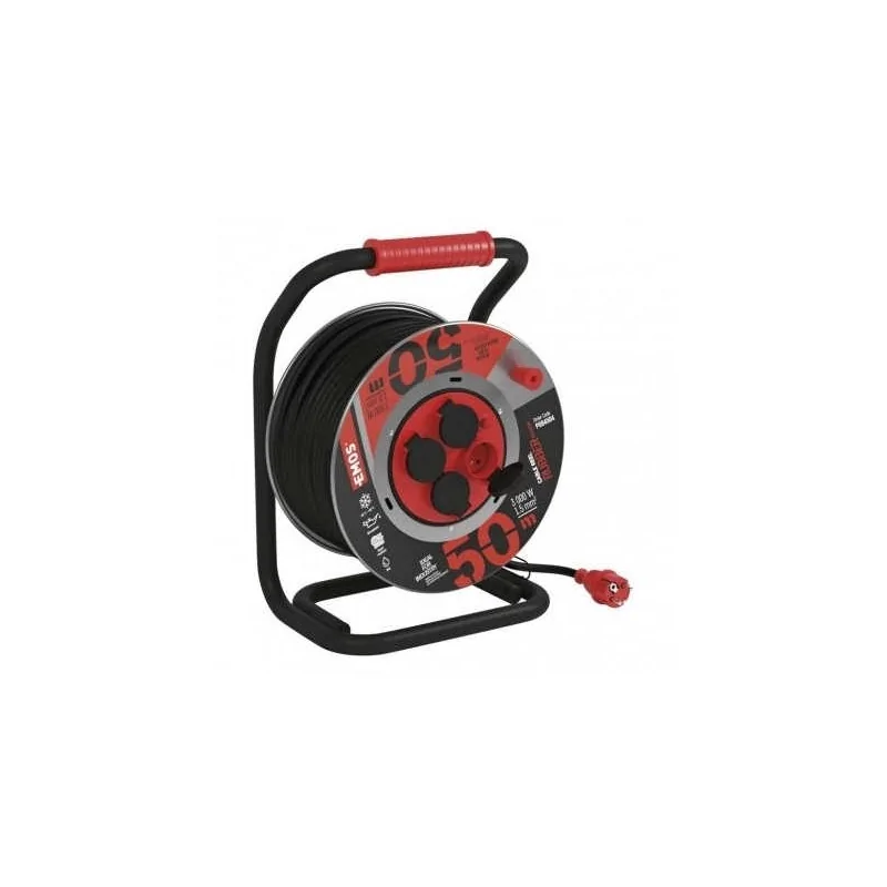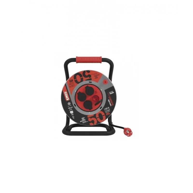 Przedłużacz zwijany guma/neopren 4 gniazda, 3x1,5, 50m metal EMOS - 1908445000