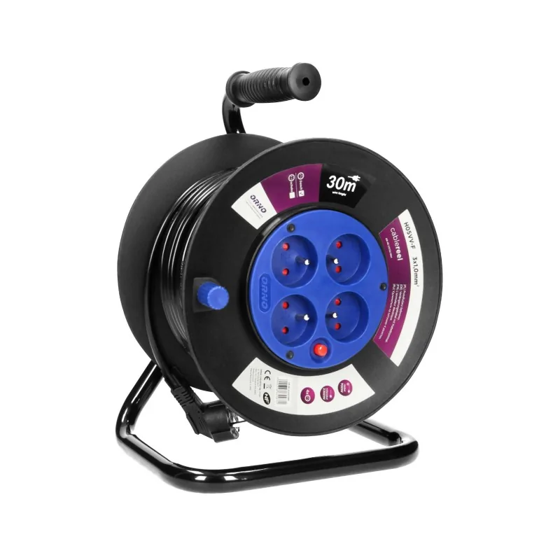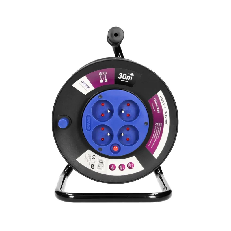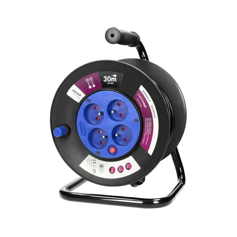 Zwijany przedłużacz na bębnie z 4 gniazdami 30m z wyłącznikiem termicznym OR-AE-13152/30M ORNO