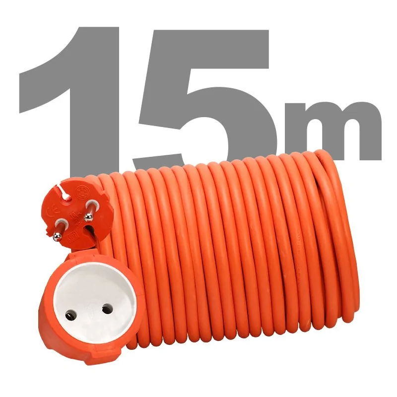 Uniwersalny przedłużacz ogrodowy PU-15m marki RUM-LUX, to niezbędny przedmiot w każdym ogrodzie, dedykowany do pomocy przy koszeniu czy zasilania światełek choinkowych lub oświetlenia tarasowego. Pomarańczowy kolor jest widoczny z daleka, dzięki czemu zapewnia to bezpieczeństwo podczas pracy. Przedłużacz możemy rozwinąć od 10 do 15 metrów. Maksymalne obciążenie to do 2500W. Zimą zasilimy przedłużaczem lampki choinkowe przed domem, oczywiście z zastosowaniem programatora elektronicznego czasu ED, aby w dzień same się wyłączały, a tuż przed zmrokiem automatycznie zapalały pełnią barw. Dostępny jest w różnych długościach.