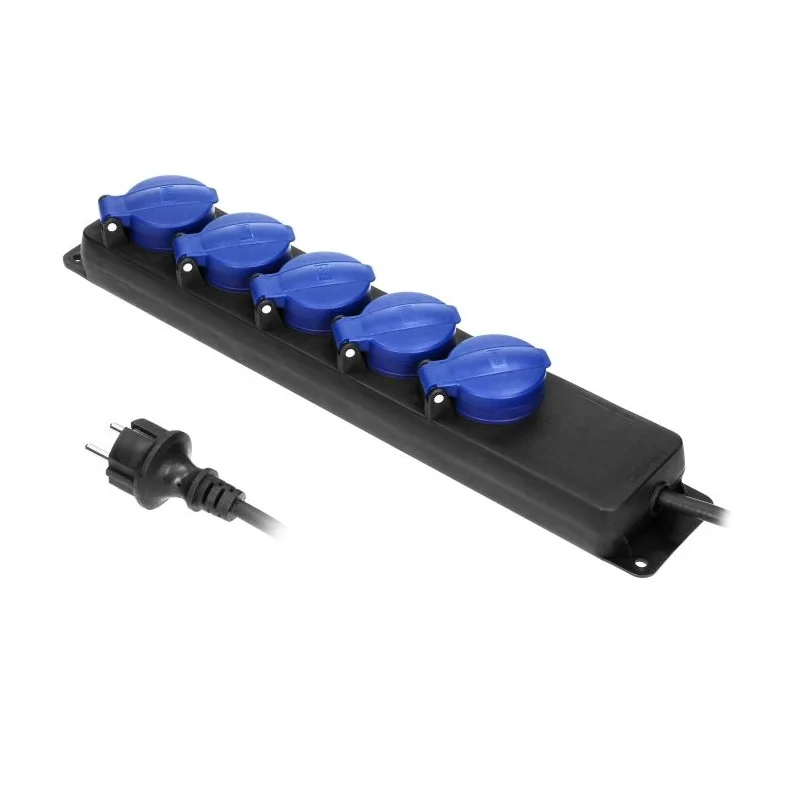 Bryzgoszczelny przedłużacz z kablem o izolacji gumowe, zapewniające użytkowanie. Do listwy możemy podpiąć 5 urządzeń do max mocy 3680W. Gniazda mają uziemienie i przesłony torów prądowych oraz pokrywy uszczelniające, które chronią przed zabrudzeniami i wilgocią. Kabel zasilający marki ORNO, ma zawieszkę, która ułatwia montaż w bezpiecznym miejscu oraz otwory służące do stałego montażu na stanowisku pracy. Przedłużacz dedykowany jest do użytku na zewnątrz i mierzy 5 metrów. Ten model dostępny jest o różnych wymiarach.