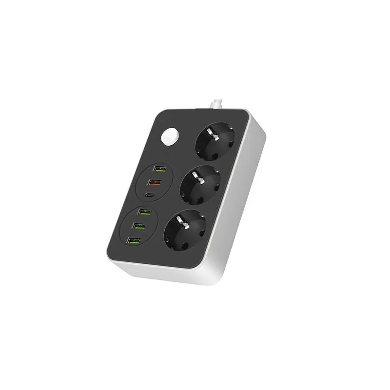 Elegancki przedłużacz elektryczny REMO marki LVT wyposażony został w 3 gniazda sieciowe 230V z uziemieniem w wersji schuko oraz 6 gniazd USB- 5 typu A i jedno typu C. Czarny przedłużacz wyposażony został w 2-metrowy kabel o przekroju 3x1,0m2. Do przedłużacza w kolorze czarnym można podłączyć urządzenia o maksymalnym łącznym obciążeniu 2500W. Produkt wyposażony został w włącznik.