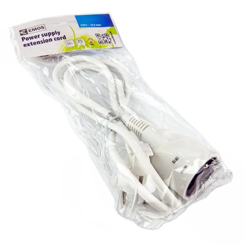 Pojedynczy przedłużacz elektryczny marki EMOS posiada okrągłe gniazdo z uziemieniem oraz przesłoną torów prądowych. Przedłużacz o długości 1,5 metra służy do zasilania urządzeń I klasy izolacji. Elektryczny przedłużacz przeznaczony jest do użytku wewnętrznego ze względu na brak odporności na kontakty mniejszymi pyłami oraz wodą (IP20). Przedłużacz wykonany z dobrej jakości materiałów posiada dwuletnią gwarancję producenta.