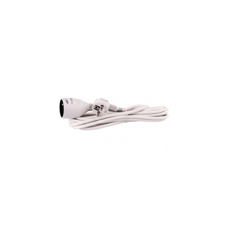 Biały przedłużacz z wyłącznikiem o długości 5 metrów. Przedłużacz y wyposażony jest w 1 gniazdo. Gniazdo przedłużacza posiada uziemienie oraz przesłony torów prądowych. Cała konstrukcja przedłużacza o długości 5m, wykonana została z tworzywa sztucznego.