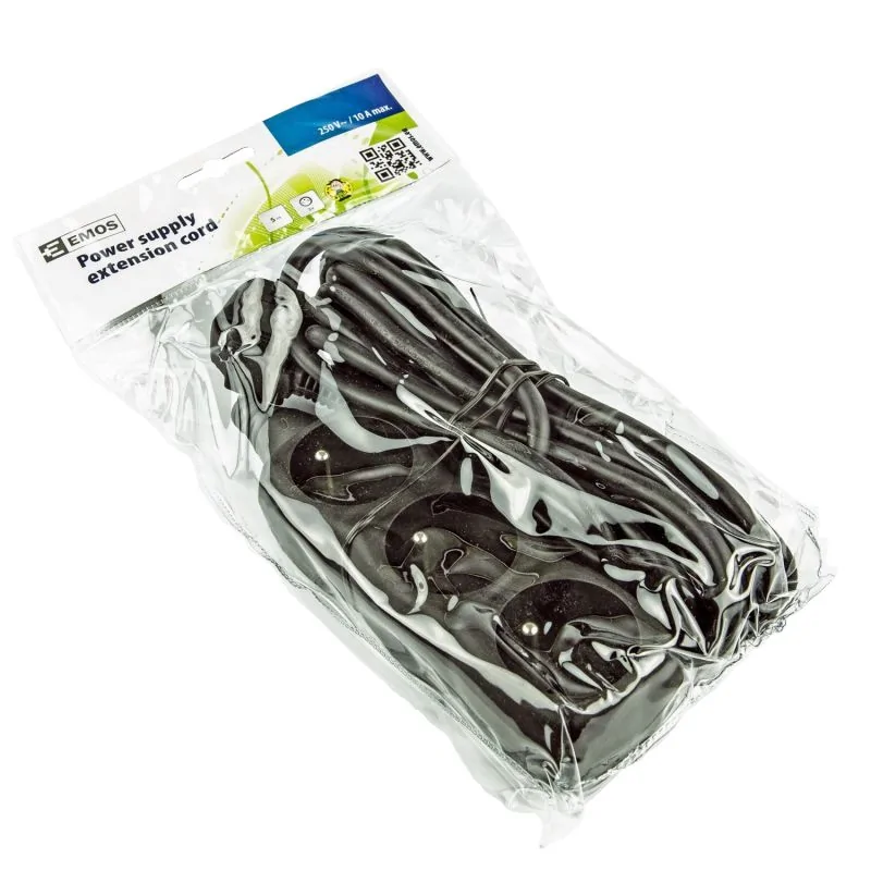 Przedłużacz elektryczny marki EMOS posiada trzy gniazda z uziemieniem oraz pięciometrowy przewód. Przedłużacz jest wyposażony również w przesłony torów prądowych, dając tym samym gwarancję i bezpieczeństwo użytkowania. Przedłużacze elektryczne są niezwykle przydatny w sytuacjach, kiedy ilość gniazd w domu jest niewystarczająca bądź ulokowane są one w nieodpowiednich miejscach. Proponowany przedłużacz prądowy posiada przewód H05VV-F3G 1 mm2 w izolacji PVC i zakończony jest wtyczką z bolcem uziemienia.