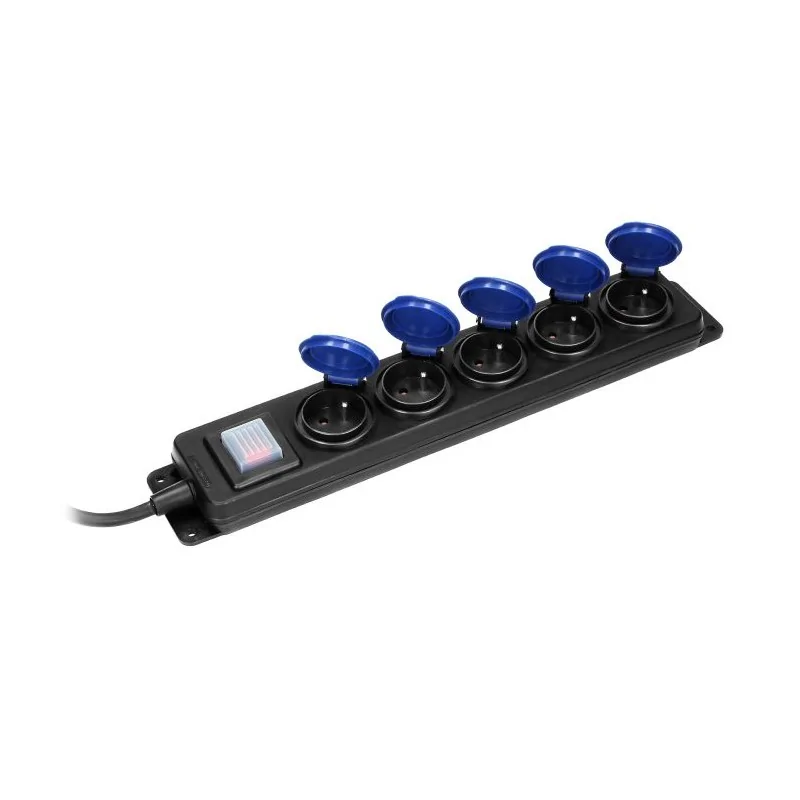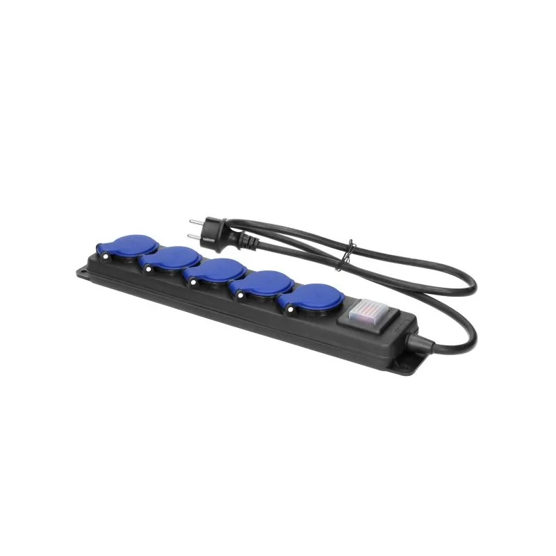Bryzgoszczelny przedłużacz, wyposażony jest w kablem o izolacji gumowej oraz włącznik. Posiada 5 gniazd sieciowych z uziemieniem i przesłonami torów prądowych oraz pokrywami uszczelniającymi, które chronią przed zabrudzeniami i wilgocią. Kabel zasilający marki ORNO, ma zawieszkę, która ułatwia montaż w bezpiecznym miejscu oraz otwory służące do stałego montażu na stanowisku pracy. Przedłużacz dedykowany jest do użytku na zewnątrz i mierzy 5 metrów długości. Ten model dostępny jest o różnych wymiarach.