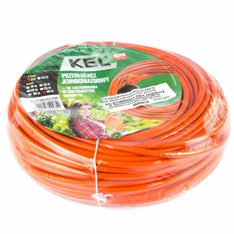 Ogrodowy jednogniazdowy przedłużacz elektryczny PO-ST/40m firmy PLASTROL jest w kolorze pomarańczowym, dzięki czemu będzie zauważalny. Przedłużacz ogrodowy pojedynczy posiada długość równą 40m i może działać przy maksymalnym obciążeniu do 2500W. Pomarańczowy przedłużacz elektryczny posiada prąd znamionowy równy 10A i napięcie znamionowe wynoszące 250V. Przedłużacz firmy PLASTROL został wyposażony w przewód OMY 2x1mm2 i posiada błyszczące wykończenie powierzchni. Oferujemy także inne produkty elektryczne firmy PLASTROL, które znajdziecie na stronie naszego sklepu internetowego.