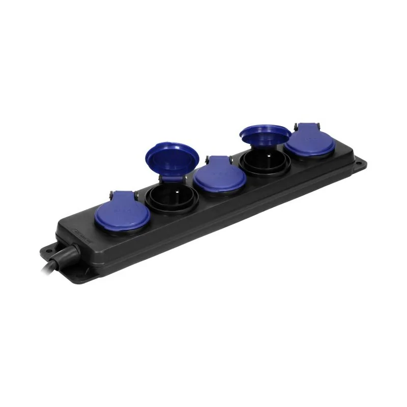 5-metrowy przedłużacz, wyposażony jest w kabel o izolacji gumowej. Posiada 5 gniazd sieciowych z uziemieniem i przesłonami torów prądowych oraz pokrywami uszczelniającymi, które chronią przed zabrudzeniami i wilgocią. Kabel zasilający marki ORNO, ma zawieszkę, która ułatwia montaż w bezpiecznym miejscu oraz otwory służące do stałego montażu na stanowisku pracy. Przedłużacz dedykowany jest do użytku na zewnątrz.