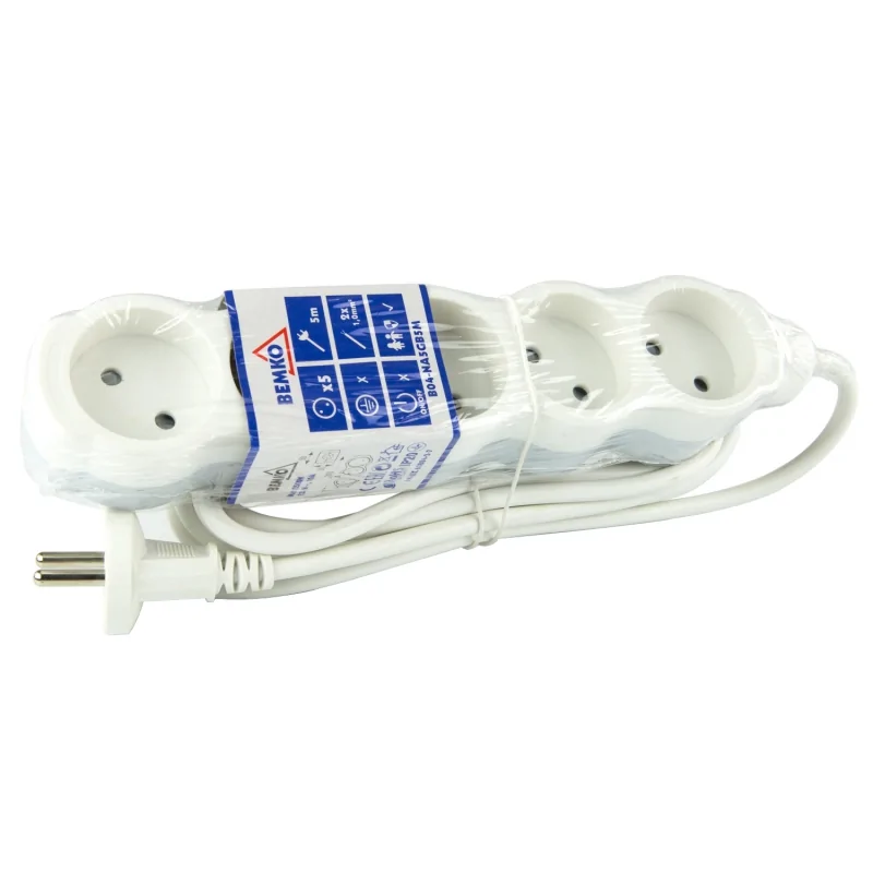Przedłużacz marki Bemko posiada pięć gniazd wyposażonych w przesłony torów prądowych. Przedłużacz pozwala na jednoczesne zasilenie pięciu urządzeń o łącznej maksymalnej mocy 2500W. Długi pięciometrowy przewód zakończony wtyczką przeznaczoną również do gniazd bez uziemienia pozwala na dogodne zasilanie urządzeń niemających bezpośredniego kontaktu ze źródłem prądu elektrycznego. Uniwersalna białoszara kolorystyka sprawia, że przedłużacz elektryczny BEMKO doskonale odnajdzie się w każdym wnętrzu nie przykuwając szczególnej uwagi.