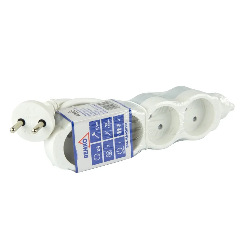 Przedłużacz elektryczny firmy BEMKO posiada cztery gniazda elektryczne z przesłonami torów prądowych dzięki czemu przedłużacz nie stanowi zagrożenia dla dzieci. Półtora metrowy przewód zakończony jest wtyczką przystosowaną do gniazd elektrycznych bez uziemienia. Przedłużacz posiada w zestawie zawieszkę ułatwiającą montaż, dzięki czemu, gdy zajdzie taka potrzeba urządzenie może być instalowane na ścianie. Uniwersalna kolorystyka sprawia, że przedłużacz nie przykuwa szczególnej uwagi i świetnie pasuje do każdej przestrzeni.