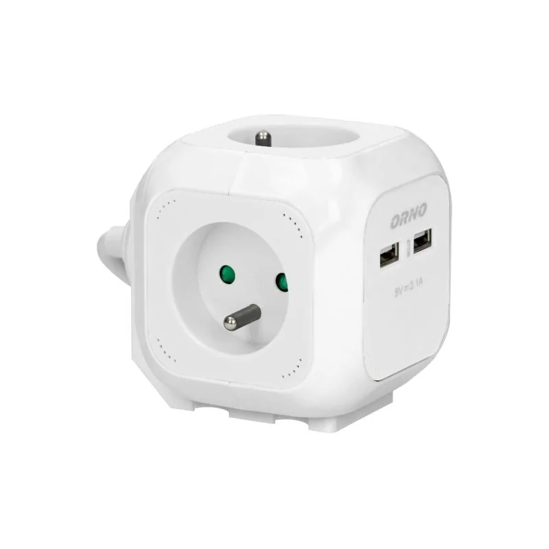 Przedłużacz w kształcie kostki na 4 gniazda 2xUSB OR-AE-13144/W ORNO