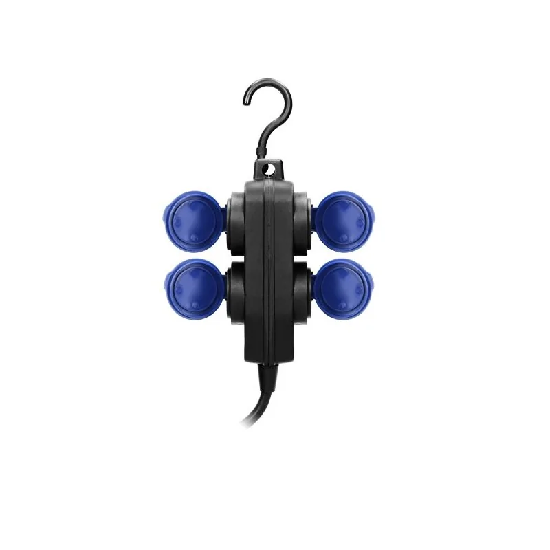 Bryzgoszczelny przedłużacz, o długości 5 metrów, wyposażony jest w kabel o izolacji gumowej. Posiada 4 gniazda (2+2) sieciowe z uziemieniem i przesłonami torów prądowych oraz pokrywami uszczelniającymi, które chronią przed zabrudzeniami i wilgocią. Kabel zasilający marki ORNO, ma hak, który ułatwia montaż na stanowisku pracy.