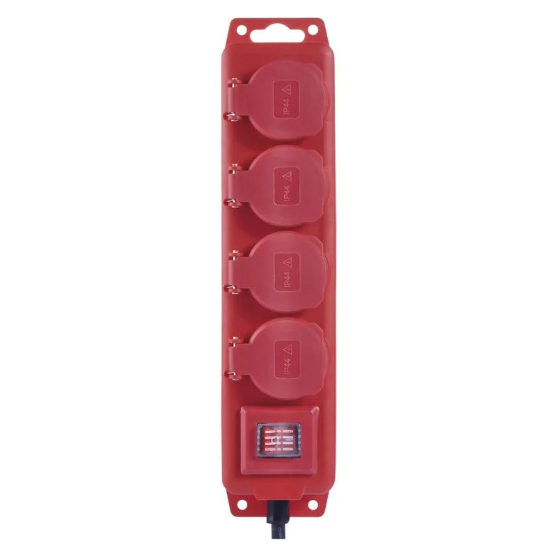 Czerwony przedłużacz ogrodowy Emos to wysokiej jakości rozwiązanie, które przyda się w miejscu, do którego nie sięga stacjonarne gniazdo. Przedłużacz ogrodowy posiada przewód o długości 5m i przekroju 1,5mm2. Produkt wyposażony został w 4 gniazda z uziemieniem oraz przełącznik on/off. Do przedłużacza można podłączyć urządzenia o maksymalnym obciążeniu do 3680W. Listwa o stopniu IP44 wykonana została z tworzywa sztucznego i czerwonej gumy. Gniazda w hermetycznej listwie z klapkami posiadają przesłony torów prądowych. Model sprawdzi się pomieszczeniach gospodarczych czy jako przedłużacz do garażu czy piwnicy. Czerwona listwa 4-gniazdowa w gumie dostępna jest także w wersji 10m lub 3m.