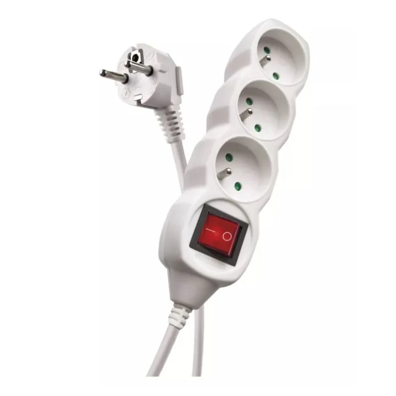 Przedłużacz elektryczny z wyłącznikiem marki EMOS posiada trzy gniazda z uziemieniem oraz przesłonami torów prądowych. Ze względu na trzymetrowy przewód przedłużacz elektryczny jest bardzo wygodny w użyciu. Przedłużacz wykonany z tworzywa w kolorze białym doskonale wpasuje w każde wnętrze nie zwracając na siebie szczególnej uwagi. Maksymalne obciążenie przedłużacza wynosi 2300W.