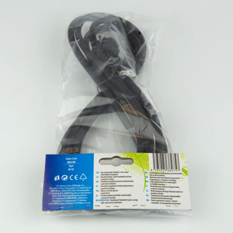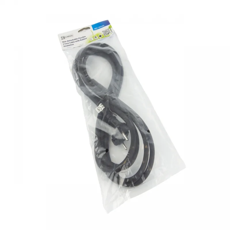 Przewód przyłączeniowy marki EMOS w postaci dwóch żył obudowanych gumową czarną izolacją doskonale sprawdzi się w odbiornikach przenośnych i ruchomych. Przewód przyłączeniowy odporny jest na niewielkie naprężenia mechaniczne przez co idealnie odnajdzie się w urządzeniach codziennego użytku. Przyłącz gumowy zakończony jest wtyczką pasującą do gniazd z uziemieniem oraz bez.