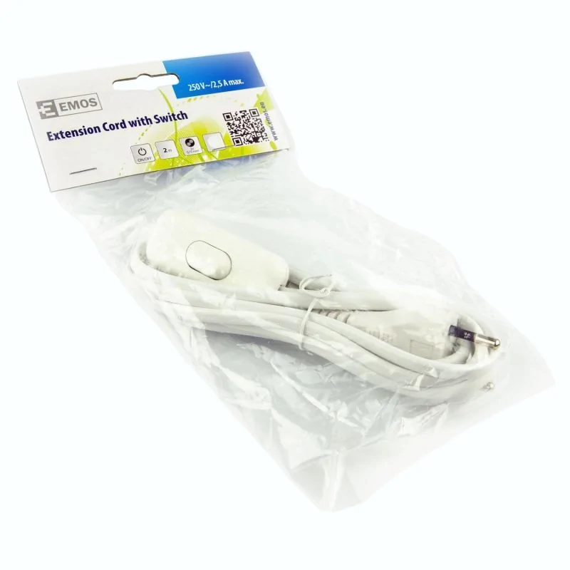 Przewód przyłączeniowy PVC 2×0,75mm z wyłącznikiem,2m biały S08272 EMOS - 2402720132
