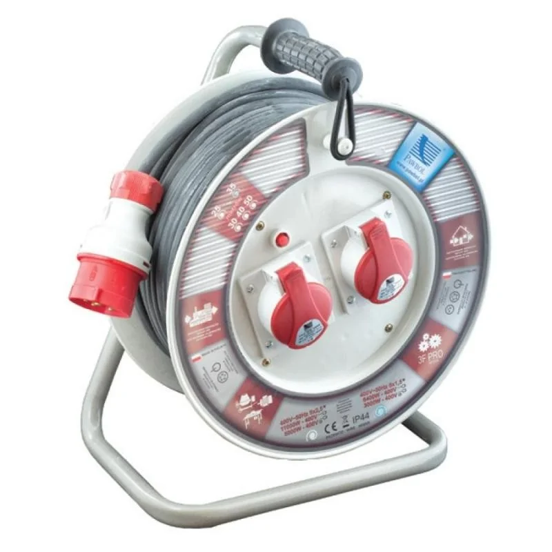 Przedłużacz bębnowy marki PAWBOL, wyposażony został w 2 gniazda z uziemieniem z klapką, która zapobiega dostaniu się wody oraz kurzu do gniazd. Produkt posiada przewód o przekroju 5x1,5mm² o długości 30m. Przedłużacz siłowy posiada wygodny gumowy uchwyt, który ułatwia przenoszenie oraz blokadę bębna, która zapobiega niepotrzebnemu rozwinięciu się kabla. Stopień odporności IP44 sprawia, że produkt posiada zwiększoną odporność na wnikanie pyłu i wilgoci. Do nawijaka można podłączyć 2 urządzenia.