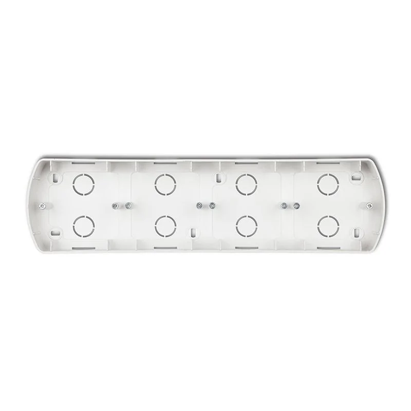 Poczwórna puszka montażowa PTH-4 w kolorze białym służy do natynkowego montażu łączników i gniazd. Kompatybilna jest z gniazdami i łącznikami z serii TREND z wyłączeniem łączników: SR-1 sterownik roletowy, RO-1 regulator oświetlenia oraz SH- 1 łącznik hotelowy . Puszka natynkowa pozioma sprawdzi się w miejscach, gdzie nie ma możliwości prowadzenia instalacji podtynkowej lub jest to utrudnione. Puszki z serii TREND zapewniają estetyczny wygląd, dostępne są w różnych wersjach kolorystycznych. W ofercie znajdują się również puszki pojedyncze, podwójne oraz puszki natynkowe potrójne.