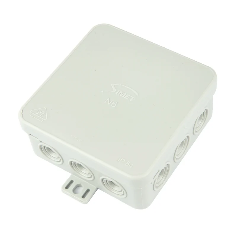 Natynkowa puszka instalacyjna samozatrzaskowa z dławnicą zintegrowaną N6 FASTBOX firmy SIMET jest w kolorze szarym. Puszka instalacyjna N6 przeznaczona jest do montażu natynkowego. Wymiary puszki to 85 x 85 39 mm. Naścienna szara puszka firmy SIMET posiada podwyższony stopień odporności IP54 i jest samozatrzaskowa.