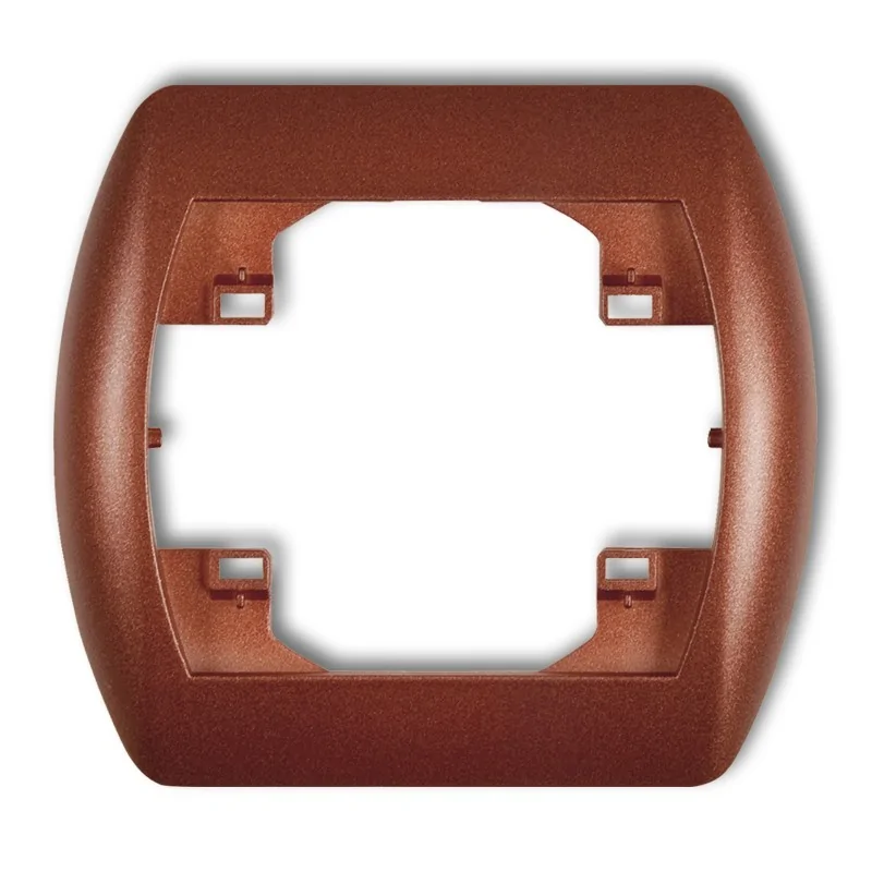 Brązowa metaliczna ramka pojedyncza 9RH-1 to ramka na jedno gniazdo lub jeden włącznik z podtynkowej serii TREND. Jest to produkt polskiego producenta KARLIK. Ramka służy do estetycznej obudowy komponentów instalacyjnych w orientacji poziomej. Ramki występują w różnych opcjach kolorystycznych, w różnych orientacjach i z różną liczbą okienek (od 1 do pięciu).