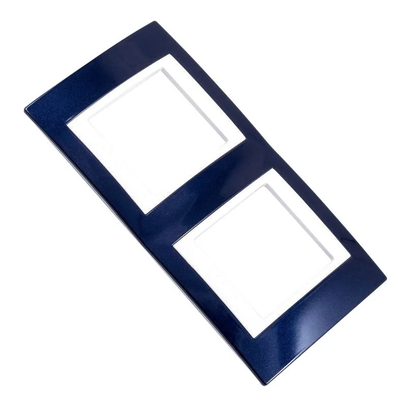 Dwukrotna ramka w wyróżniającym się ciemnoniebieskim kolorze o nazwie błękit indygo to jeden z typów akcesoriów osprzętowych do instalacji elektrycznych zakładanych w domach, firmach, biurach czy innych pomieszczeniach, który cechuje się niespotykaną i stylową kolorystyką. Ramka dekoracyjna przeznaczona jest do montażu w płaszczyźnie poziomej. Niebieska błyszcząca powierzchnia delikatnie mieni się metaliczną poświatą. Ramkę z 2 okienkami możesz umieścić np. w pokoju dla chłopca, gdzie dominuje taka kolorystyka. Jej szerokość to ok. 16,1 cm, a wysokość 8 cm. Kontrastowe białe wstawki w ramce podwójnej błękit indygo świetnie dopełniają całości - pięknie prezentując się na ścianie Twojego mieszkania