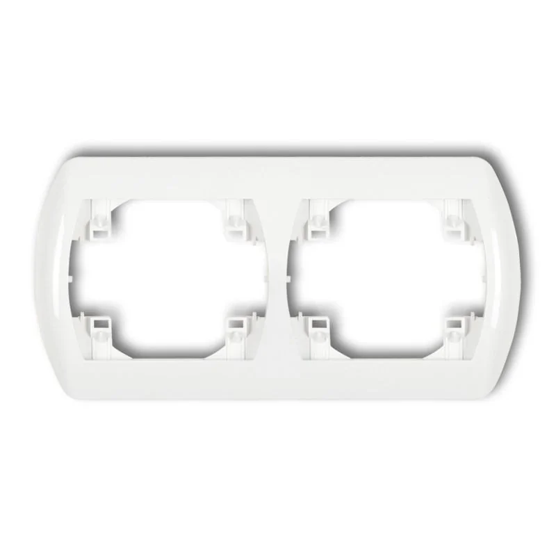 Biała ramka podwójna RH-2 to element wykończeniowy przeznaczony do artykułów z serii podtynkowej o nazwie TREND. Ramka zmieści w sobie dwa moduły położone jeden obok drugiego, w orientacji poziomej. Uniwersalny kolor ramki powoduje, że produkt pasuje i do kuchni, i do salonu, a także do biur czy innych pomieszczeń użytkowych. Ramka posiada stopień ochrony IP20. Materiał, z którego wykonana została ramka odporny jest na uszkodzenia mechaniczne i działanie promieni UV- kolor nie blaknie, a ramkę łatwo utrzymać w czystości.