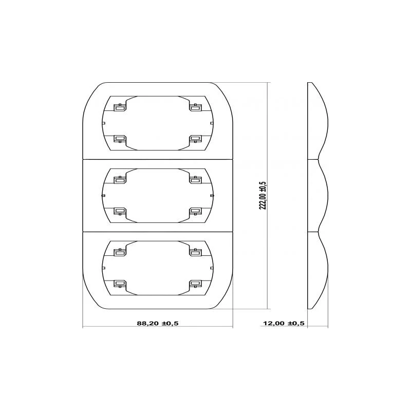 Potrójna biała ramka w orientacji pionowej RV-3 to produkt do osadzania gniazd i łączników z serii TREND. Uniwersalna kolorystyka i zaokrąglone kształty ramki łączą w sobie funkcjonalność oraz funkcje dekoracyjne. Ramka wielokrotna RV-3 zmieści w sobie do trzech gniazd i łączników z podtynkowej linii TREND, produkowanej przez firmę KARLIK. Do ramki nie pasują gniazda podwójne. Ramkę wykonano z tworzywa odpornego na zmianę kolorów i uszkodzenia mechaniczne. Ramka posiada stopień szczelności IP20. Ramki na osprzęt z tej serii dostępne są także w innych kolorach, krotnościach i orientacjach.