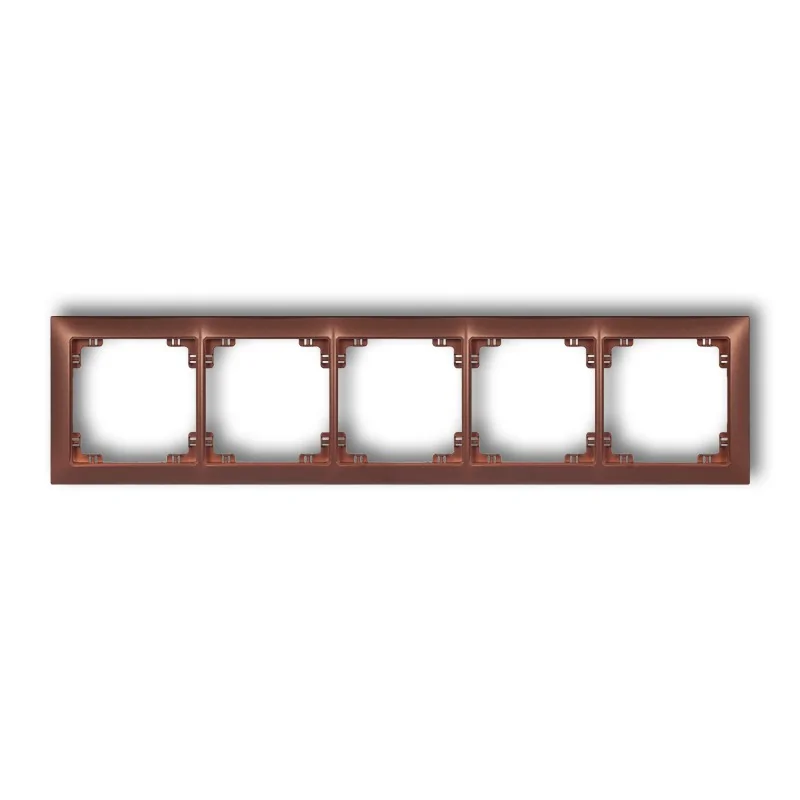 Ramka instalacyjna pięciokrotna 9DRSO-5 jest w kolorze brązowym. Mechanizmy i ramki DECO sprzedawane są osobno. Ramki DECO Soft nie są kompatybilne z gniazdami podwójnymi DECO. Do gniazda podwójnego należy kupić ramkę DECO. Produkty DECO SOFT przeznaczone są do montażu pionowego, jak i poziomego.
