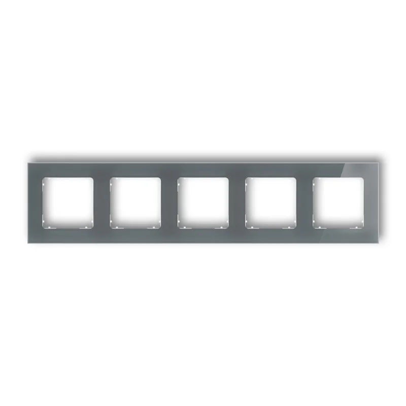 Ramka pięciokrotna kwadratowa serii ICON firmy KARLIK z efektem szkła w kolorze grafitowym białym spodem. Do ramki należy dokupić osobno mechanizm tej samej serii oraz marki. Ramki instalacyjne ICON dostępne są w wersji okrągłej, zaokrąglonej oraz kwadratowej w krotnościach 1-5, w różnych wersjach kolorystycznych.