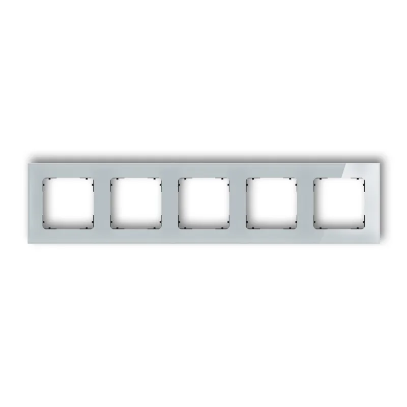 Ramka pięciokrotna kwadratowa serii ICON firmy KARLIK z efektem szkła w kolorze szarym z czarnym spodem. Do ramki należy dokupić osobno mechanizm tej samej serii oraz marki. Ramki instalacyjne ICON dostępne są w wersji okrągłej, zaokrąglonej oraz kwadratowej w krotnościach 1-5, w różnych wersjach kolorystycznych.