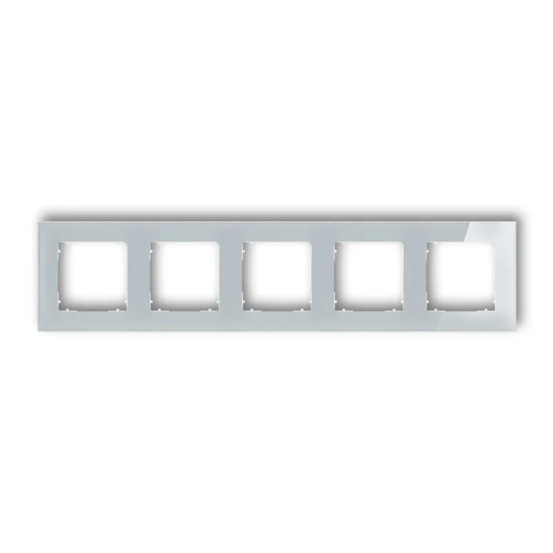 Ramka pięciokrotna kwadratowa serii ICON firmy KARLIK z efektem szkła w kolorze szarym z białym spodem. Do ramki należy dokupić osobno mechanizm tej samej serii oraz marki. Ramki instalacyjne ICON dostępne są w wersji okrągłej, zaokrąglonej oraz kwadratowej w krotnościach 1-5, w różnych wersjach kolorystycznych.