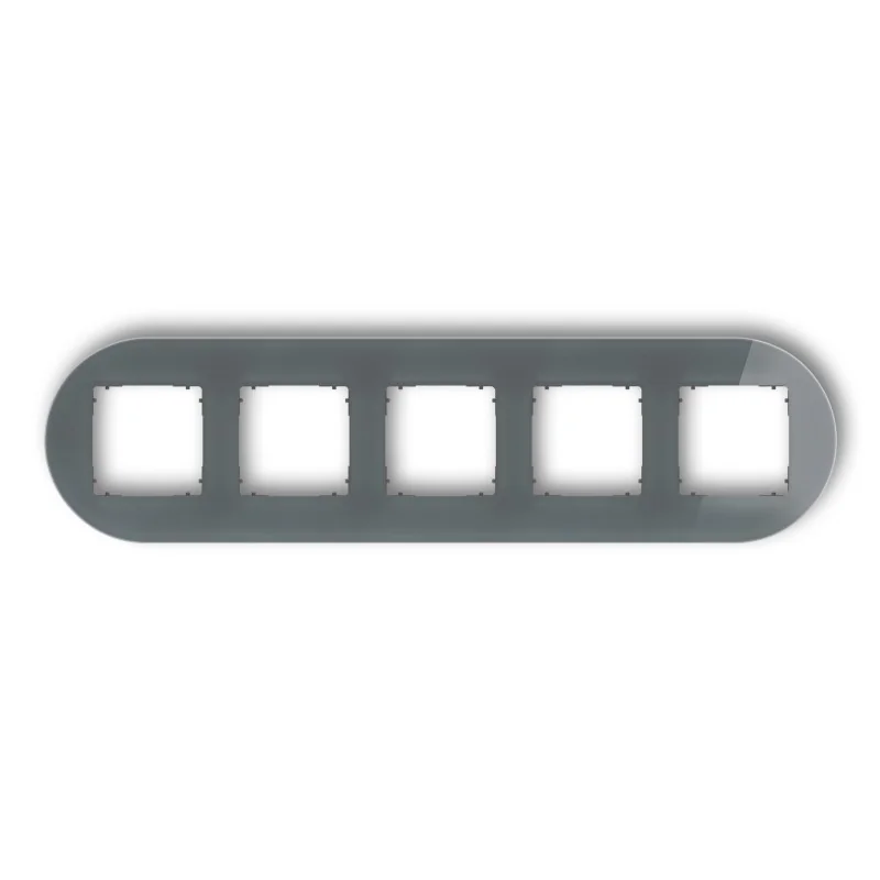Ramka pięciokrotna okrągła serii ICON firmy KARLIK z efektem szkła w kolorze grafitowym z grafitowym matowym spodem. Do ramki należy dokupić osobno mechanizm tej samej serii oraz marki. Ramki instalacyjne ICON dostępne są w wersji okrągłej, zaokrąglonej oraz kwadratowej w krotnościach 1-5, w różnych wersjach kolorystycznych.