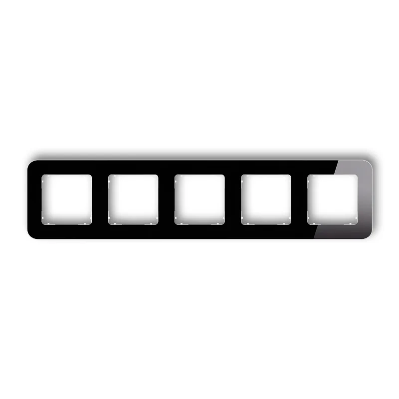 Ramka pięciokrotna zaokrąglona serii ICON firmy KARLIK z efektem szkła w kolorze czarnym z białym spodem. Do ramki należy dokupić osobno mechanizm tej samej serii oraz marki. Ramki instalacyjne ICON dostępne są w wersji okrągłej, zaokrąglonej oraz kwadratowej w krotnościach 1-5, w różnych wersjach kolorystycznych.