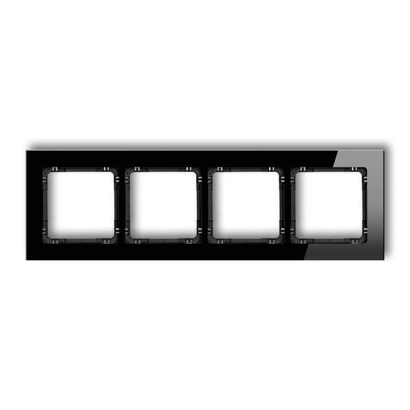 Czarna ramka 12-12-DRG-4 z lini DECO KARLIK to dekoracyjna ramka elektroinstalacyjna z czarnym spodem i ramką wykonaną ze szkła. Oprawka na włączniki światła lub gniazda sieciowe przeznaczona jest do osadzania łączników i kontaktów z polskiej serii DECO produkowanych przez firmę KARLIK. Szklana faktura ciekawie prezentuje się na ścianach salonów, kuchni czy sypialni. Produkt posiada 5 letnią gwarancję. Seria DECO to seria modułowa, w której środki i gniazda kupujemy osobno. Ramka przeznaczona jest do montażu zarówno w pionie, jak i poziomie.