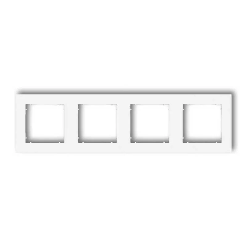 Ramka poczwórna instalacyjna serii DECO MINI marki KARLIK jest w kolorze białym. Przeznaczona jest tylko do włączników i gniazd serii DECO MINI KARLIK. Ramka dostępna jest w różnych kolorach oraz krotnościach- od pojedynczej aż do pięciokrotnej. Włączniki DECO MINI sprzedawane są z ramką pośrednią. Ramki serii MINI to najmniejsze, dostępne na polskim rynku produkty tego typu. Ramkę można montować pionowo, jak i poziomo.