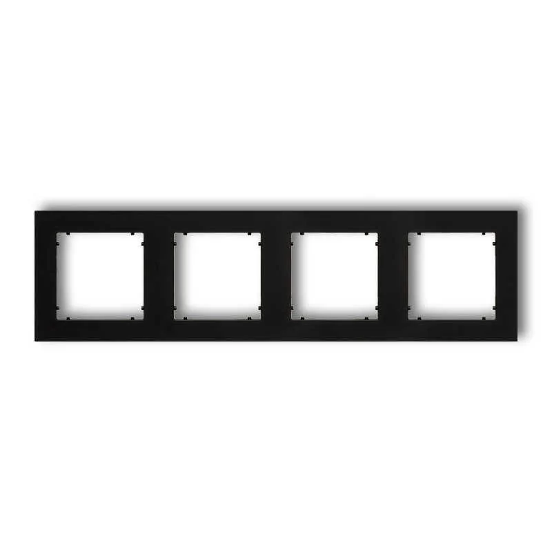Ramka poczwórna instalacyjna serii DECO MINI marki KARLIK jest w kolorze czarnym matowym. Przeznaczona jest tylko do włączników i gniazd serii DECO MINI KARLIK. Ramka dostępna jest w różnych kolorach oraz krotnościach- od pojedynczej aż do pięciokrotnej. Włączniki DECO MINI sprzedawane są z ramką pośrednią. Ramki serii MINI to najmniejsze, dostępne na polskim rynku produkty tego typu. Ramkę można montować pionowo, jak i poziomo.