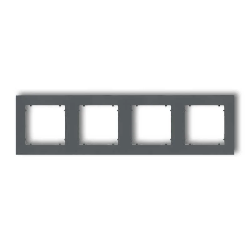 Ramka poczwórna instalacyjna serii DECO MINI marki KARLIK jest w kolorze grafitowym matowym. Przeznaczona jest tylko do włączników i gniazd serii DECO MINI KARLIK. Ramka dostępna jest w różnych kolorach oraz krotnościach- od pojedynczej aż do pięciokrotnej. Włączniki DECO MINI sprzedawane są z ramką pośrednią. Ramki serii MINI to najmniejsze, dostępne na polskim rynku produkty tego typu. Ramkę można montować pionowo, jak i poziomo.