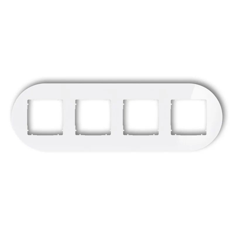 Ramka poczwórna okrągła serii ICON firmy KARLIK z efektem szkła w kolorze białym. Do ramki należy dokupić osobno mechanizm tej samej serii oraz marki. Ramki instalacyjne ICON dostępne są w wersji okrągłej, zaokrąglonej oraz kwadratowej w krotnościach 1-5, w różnych wersjach kolorystycznych.