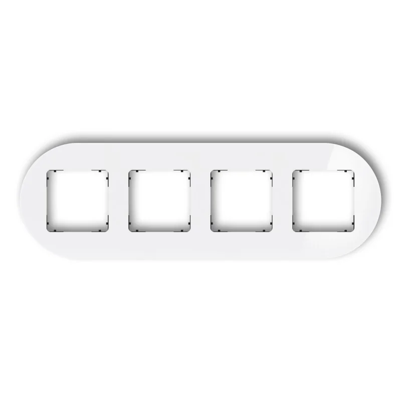 Ramka poczwórna okrągła serii ICON firmy KARLIK z efektem szkła w kolorze białym z czarnym spodem. Do ramki należy dokupić osobno mechanizm tej samej serii oraz marki. Ramki instalacyjne ICON dostępne są w wersji okrągłej, zaokrąglonej oraz kwadratowej w krotnościach 1-5, w różnych wersjach kolorystycznych.