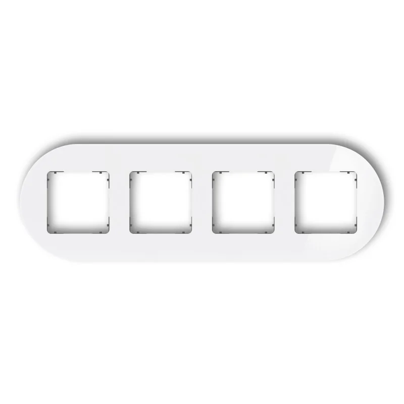 Ramka poczwórna okrągła serii ICON firmy KARLIK z efektem szkła w kolorze białym z grafitowym matowym spodem. Do ramki należy dokupić osobno mechanizm tej samej serii oraz marki. Ramki instalacyjne ICON dostępne są w wersji okrągłej, zaokrąglonej oraz kwadratowej w krotnościach 1-5, w różnych wersjach kolorystycznych.
